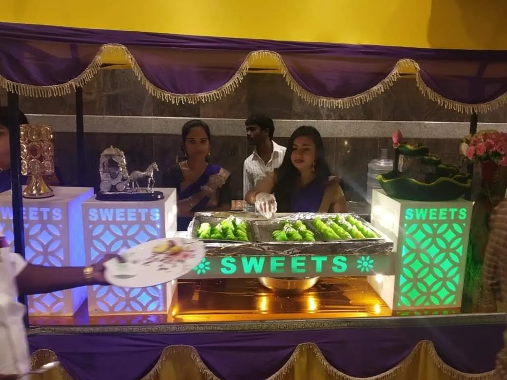 Welcome to SRI RR Catering, your trusted partner for unforgettable celebrations. We specialize in wedding catering, providing a delicious array of vegetarian and non-vegetarian options that will delight your guests. From corporate events and outdoor gatherings to birthday parties, engagements, and receptions, we ensure that every event is a culinary success. Beyond catering, we offer stunning decorations, professional photography, DJ setups, and special couple entry arrangements to make your day truly special. Our services also include makeup artistry, wedding anniversary celebrations, and traditional Seemantham ceremonies. We take care of every detail, including building lighting and a wide range of snacks and foods. With SRIRR Catering, your event will be a memorable experience filled with great food, stunning decor, and excellent service.
